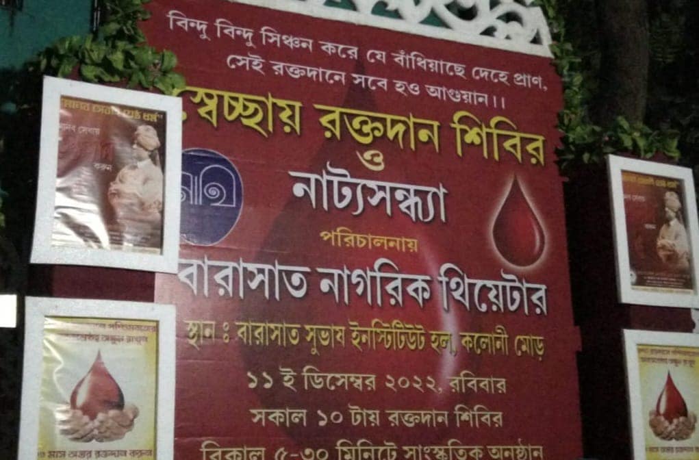 স্বেচ্ছায় রক্তদান শিবির ও মনোজ্ঞ নাট্য সন্ধ্যা অনুষ্ঠিত হল বারাসত নাগরিক থিয়েটারের উদ্যোগে